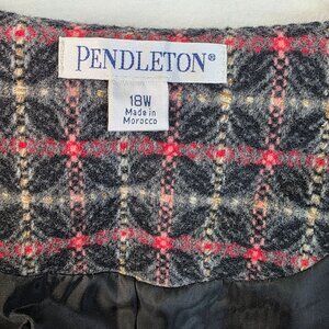 Pendleton VTG Wool Blend Open Front Plaid Blazer Red Charcoal 18W Deadstock