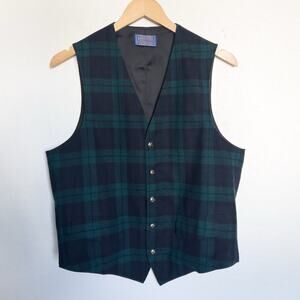 Pendleton Vest Wool Plaid Mens Small Medium Tartan Plaid Green Blue Preppy