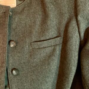 Structured short blazers are in this fall. Be on trend with this The Pendleton Vintage 100% Virgin Wool hidden Button Blazer in Gray in Women size 18. This blazer is a stylish and classic piece that exudes a preppy and business-like vibe. Made with high-quality wool and featuring a solid pattern, this blazer is both timeless and versatile. The button closure and hidden buttons add a unique and sophisticated touch, while the vintage design gives it a distinctive charm. Perfect for 80s-inspired looks, this blazer from Pendleton is a must-have for any woman's wardrobe.