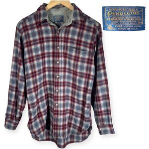 Pendleton Vintage 70s Wool Plaid Flannel Button Down Shirt Size Medium