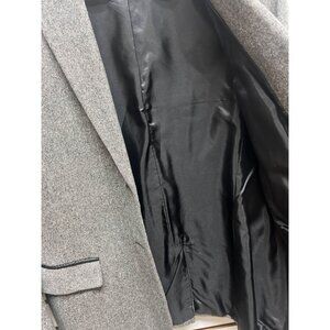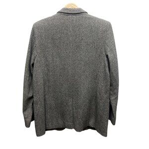 Elevate your professional wardrobe with this vintage Pendleton blazer. Featuring a stylish gray chevron pattern and black faux leather trim, it exudes timeless sophistication, perfect for any business setting.