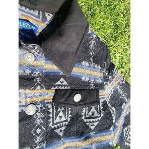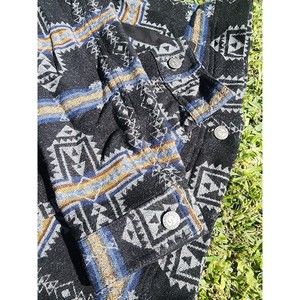 Pendleton Vintage Fit Blue Black Aztec Wool Jacket Size Medium Button Womans