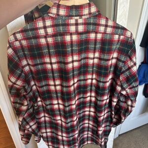 Vibrant wool shirt by Pendleton. Features a mix of red, green, and cream. Ideal for stylish comfort. Such a cool vintage style! Has three small holes as seen in pictures. Made with 100% wool. #vintage #y2k #outdoors #western #flannel