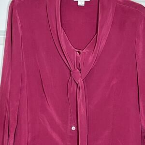 Pendleton Vintage Purple Silk Button Front Shirt with Tie Neck Plus Size 14