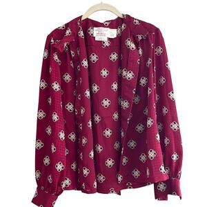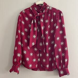 Pendleton Vintage Secretary High Neck Blouse Burgundy Neck Tie-Made USA-Size 8P