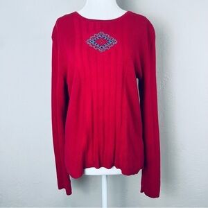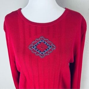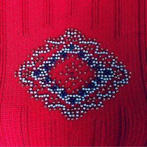 Pendleton Vintage Southwestern Beaded Lightweight Knit Red Sweater Size Large