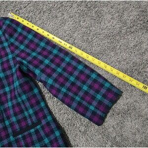 This Pendleton Vintage Wool Blazer in women's size 16 features a classic plaid pattern in blue and purple colors, making it suitable for casual, workwear, or business occasions. Made of 100% pure virgin wool, the blazer has a regular fit with long sleeves and a single-breasted design with a four-button front.