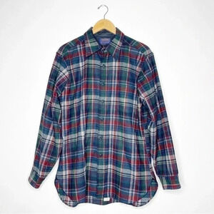 Pendleton Vintage Wool Button Down Mens Plaid Shirt Size Large Made in USA