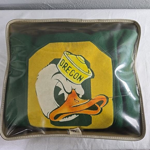 Good Condition, Pendleton VTG 70s Robe in A Bag - Oregon Ducks, 100% Virgin Wool, Includes; Zippered Travel Bag, Seat Cushion, Ducks Blanket, ~52x65"