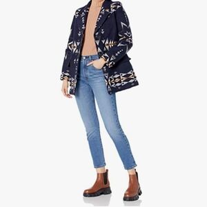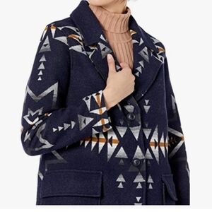 Pendleton Wahkeena Wool Coat NWT Blue Jaquard Aztec Pattern