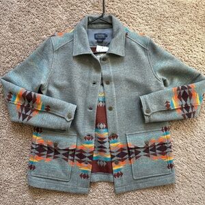 Wool & leather exterior, good condition with some marks on the bottom leather (can see in pictures)