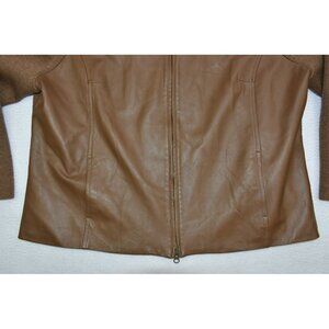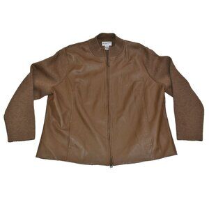 Pendleton Women 3X Brown Leather & Merino Wool Sweater Jacket Full Zip VTG Flaws