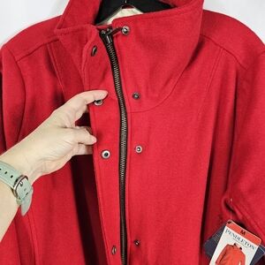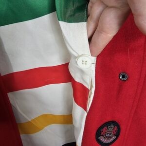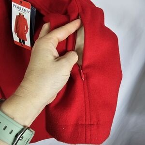 Pendleton Women Hudson Bay Red Wool Car Coat Sz M Striped Lining Water Repellent