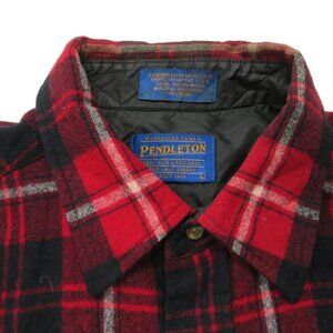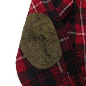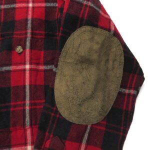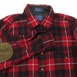 Pendleton red plaid long sleeve button up flannel shirt with elbow patches. Great looking shirt! I ship fast and package securely for safe delivery!