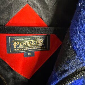 Commanding presence in a blue and black plaid pattern, this Pendleton coat exudes timeless style and warmth. The structured silhouette features a stand-up collar that frames the face, and a full zip closure for versatile wear. Detailed with subtle, set-in pockets that maintain a clean line, this coat promises both functionality and elegance. Ideal for crisp autumn strolls, weekend getaways in the mountains, or layering over your favorite sweater on a cold day.