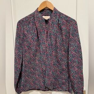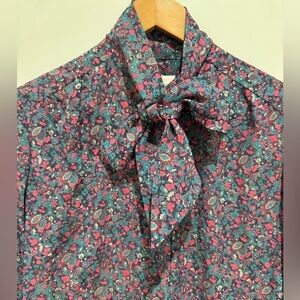 Pendleton Women's 100% Poly Floral Blouse Tie Scarf Button Front Shirt 6P / D