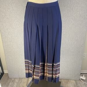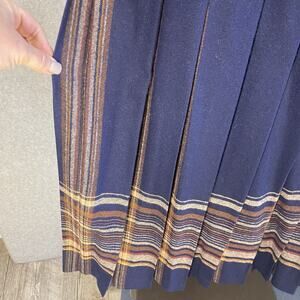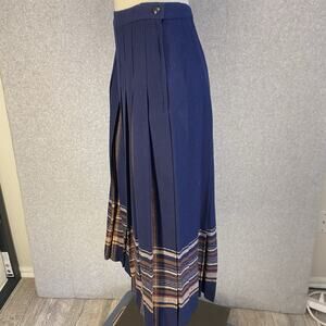 💙 Pendleton Womens 14 Navy Wool Plaid Pleated Midi Skirt Academia 💙