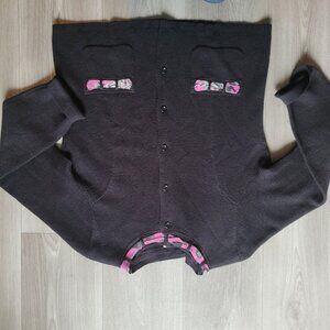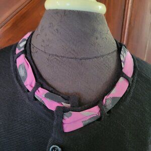 Pendleton Womens Black Cardigan Sweater With Pink Camouflage Trim Size L Wool/Ac