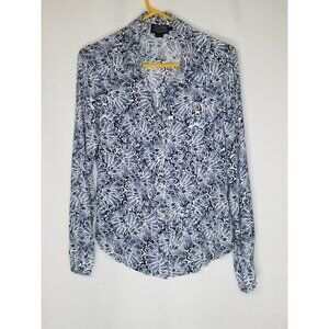 Pendleton Women's Blue White Button Up Blouse Shirt size 12 roll up sleeves.