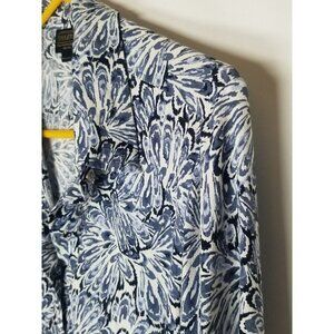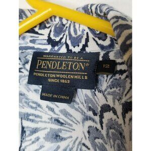 Pendleton Women's Blue White Button Up Blouse Shirt size 12 roll up sleeves