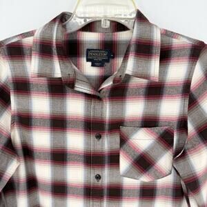 Pendleton Women's Boyfriend Doublebrushed Flannel Button Down Shirt Brown Sz M