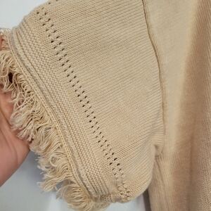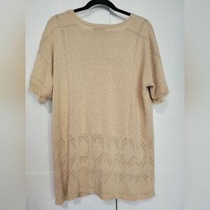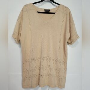 Pendleton Women's Frayed Sleeve Linen Blend Knit Top Size Large in Tan