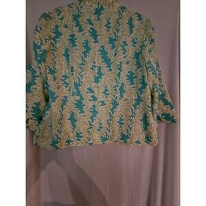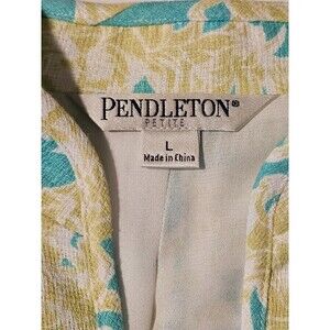 Pendleton Women's Front Button Floral Linen Blazer Blue Green Sz L Office