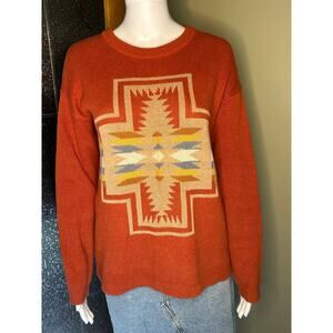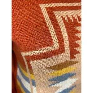 Pendleton Womens Harding Cotton Sweater Orange Tribal Southwest Pattern Small