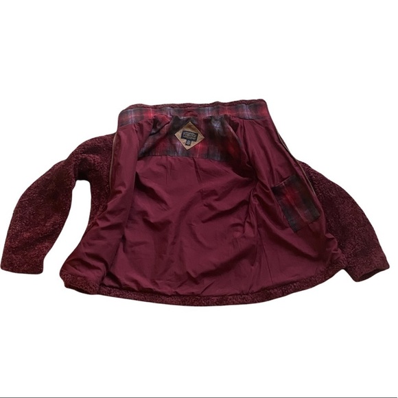 Pendleton women's deep pile Full Zip Deep Burgundy Color Sherpa fleece jacket size Medium. Two pockets. One pocket inside. Full zip front. Preowned. But in excellent condition. See all photos. This is a beautiful jacket.