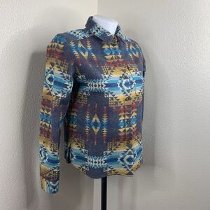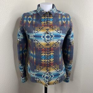 Pendleton Womens Jacquard Lodge Button L/S Shirt Sz S Colorful Aztec Virgin Wool