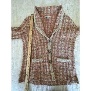 Features: Pull on, button up, collared, pockets, knit blazer, orange
