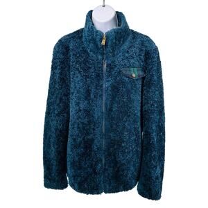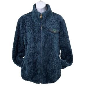Pendleton Womens Large Navy/Green Plaid Full Zip Fuzzy Teddy Jacket Cozy Zip-Up