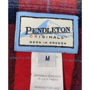 The Pendleton Women's M Red Plaid 49er Jacket is a limited edition piece made from 100% virgin wool, featuring a classic flannel fabric type with a plaid pattern. This mid-length jacket with long sleeves is perfect for casual occasions during the winter, fall, and spring seasons. With a button closure and a regular fit, this basic jacket also includes a wool lining and insulation, making it a stylish and timeless addition to any woman's wardrobe. The jacket is handmade in the United States by the renowned brand Pendleton, showcasing their quality craftsmanship and attention to detail.