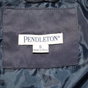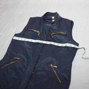 Pendleton Womens Navy Camas Vest Gold Hardware Faux Leather Trim Quilted Size Sm