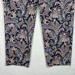 Pendleton Women’s Paisley Print Cotton Blend Ankle Pants Sz 14 Navy Coral Strech