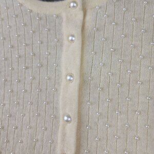Pendleton Women's Pearl Button Embellished Lambswool Angora Cardigan Sweater L Creamy Yellow