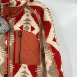 Pendleton Women's Pike Fleece Jacket S Snap Front Orange Mango Los Lunas Tribal