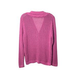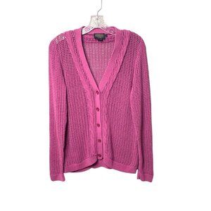 Pendleton Women's Pink Fuchsia Open Cable Knit Button-Front Cardigan Sweater Size Large
