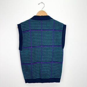 Pendleton Women’s Rare 80s 90s Teal Navy Purple Houndstooth Checker Sweater Vest