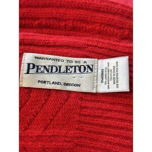 This is a women's red rectangular cable knit wool blend scarf from Pendleton in very good condition.