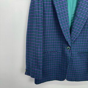 Pendleton Women’s Single Button Green Purple Houndstooth Navy Shell Blazer Jacket