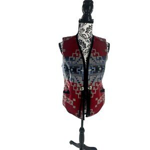 Pendleton Womens Southwestern Wool Vest Small Red/Blue Geometric Pattern USA Fab