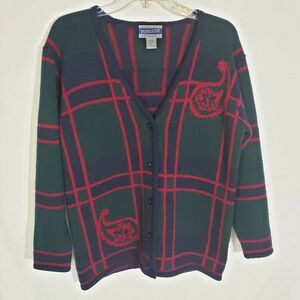 Pendleton Women's Sweater Petite Medium Cardigan Wool Button Front V-Neck Green