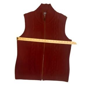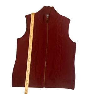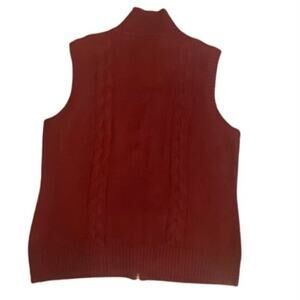 Pendleton Women’s Sweater Vest L Red Cable Knit 100% Cotton Zip Front Classic