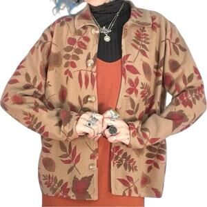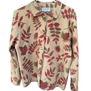 Pendleton Women’s Vintage Brown & Burgundy Fall Leaves Wool Cardigan Size Large