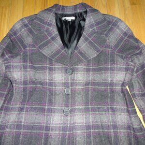 Pendleton Women's Wool 3-Button Peacoat Gray Purple Plaid - Size 18 --