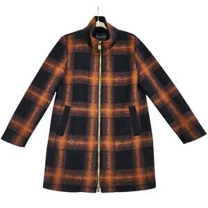 Pendleton Womens Wool Blend Walker Coat Jacket Size Small Navy Blue Copper Plaid