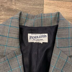 Pendleton Petite Vintage Women’s Blazer. Size: L. 2 front pockets and 2 front buttons. Classic! Please note: Size tag has been removed. Please go by measurements. 19” ptp and 24” long.