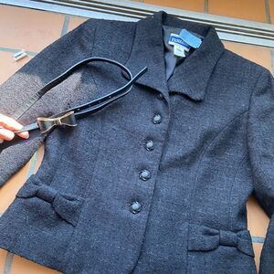 Pendleton blazer, wool jacket, cropped blazer, bow detail jacket, vintage Pendleton, classic preppy, Chanel inspired, Old Hollywood, office chic, timeless fashion, tailored womenswear, minimalist vintage, black wool blazer, smart casual, Old Money, Coquette, Quiet Luxury, Preppy Classic, Clueless Core