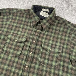 Pendleton Wool Flannel Shirt Mens Medium Lined Plaid Green (Sz Tag XL Long)
